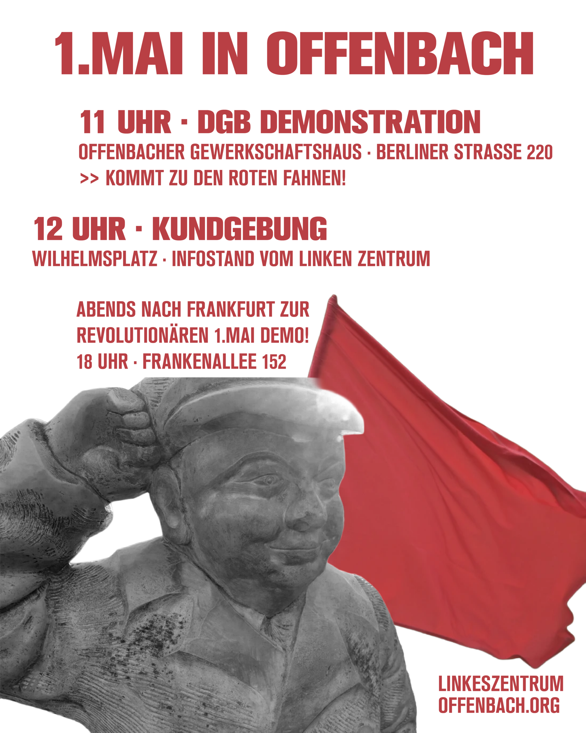 Kommt zur Demonstration, bringt rote Fahnen und Schilder! Im Anschluss findet ihr uns auf der Kundgebung mit einem eigenen Infostand.